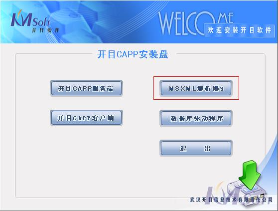 運行開目CAPP 安裝盤中的KmcappSetup.exe文件,在彈出的安裝界面中,點擊“MSXML解析器3”按鈕安裝即可。