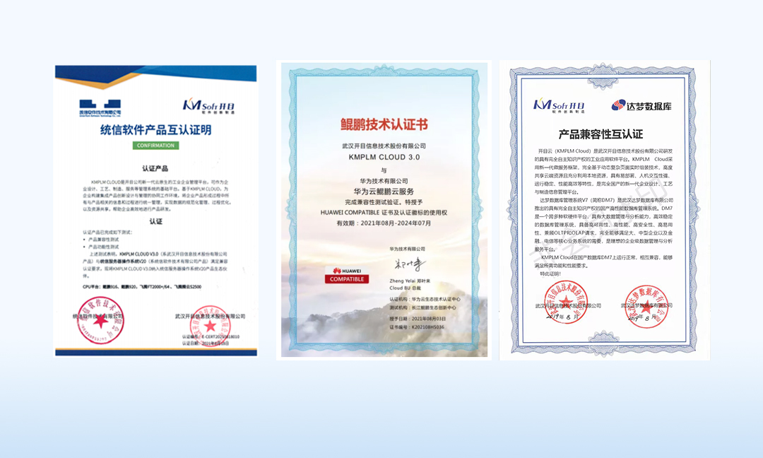 “開目軟件自主研發的KMPLM CLOUD 獲得華為技術有限公司華為云鯤鵬云服務、華為云Stack 8.0(鯤鵬)雙重兼容性技術認證,標志著KMPLM CLOUD能夠穩定運行在國產化基礎設施之上,可以更好地滿足大型企業對于系統安全可靠、技術自主可控的需求。”