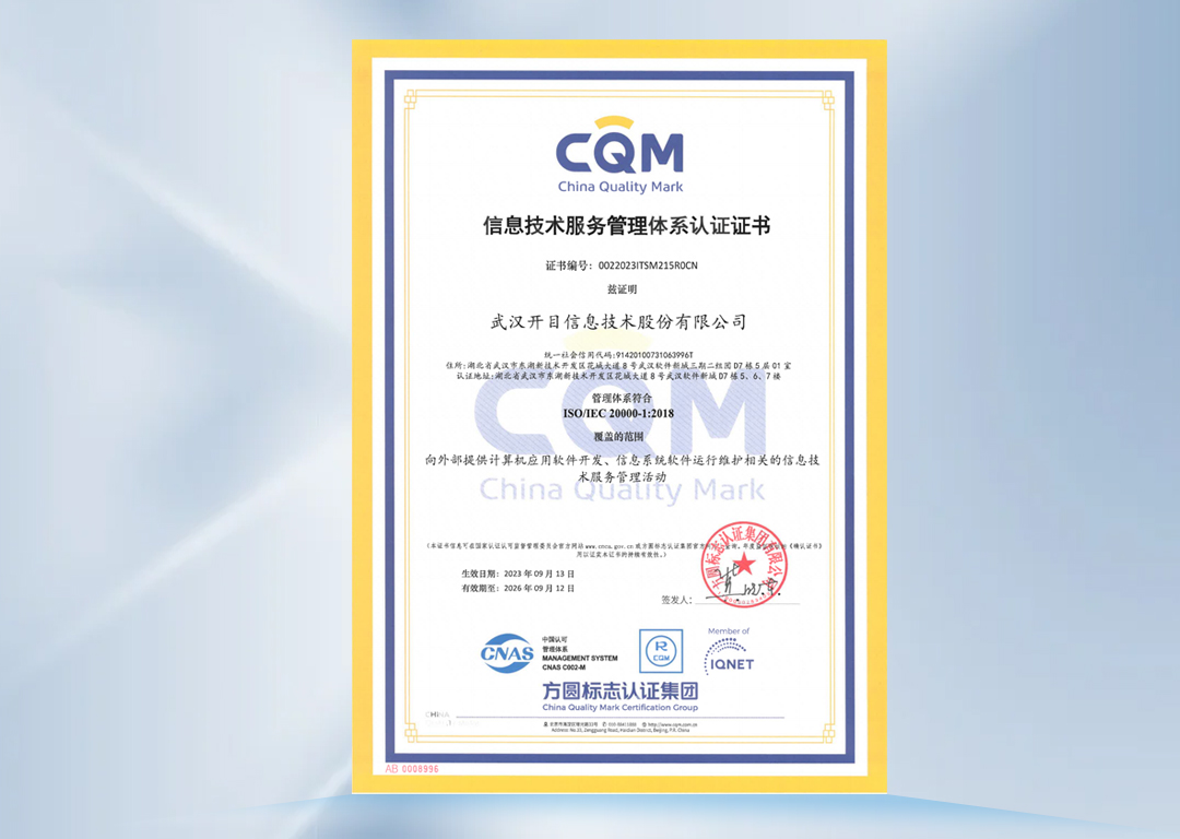 喜訊!開目軟件順利通過軟件領域最高級別CMMI5和ISO20000認證