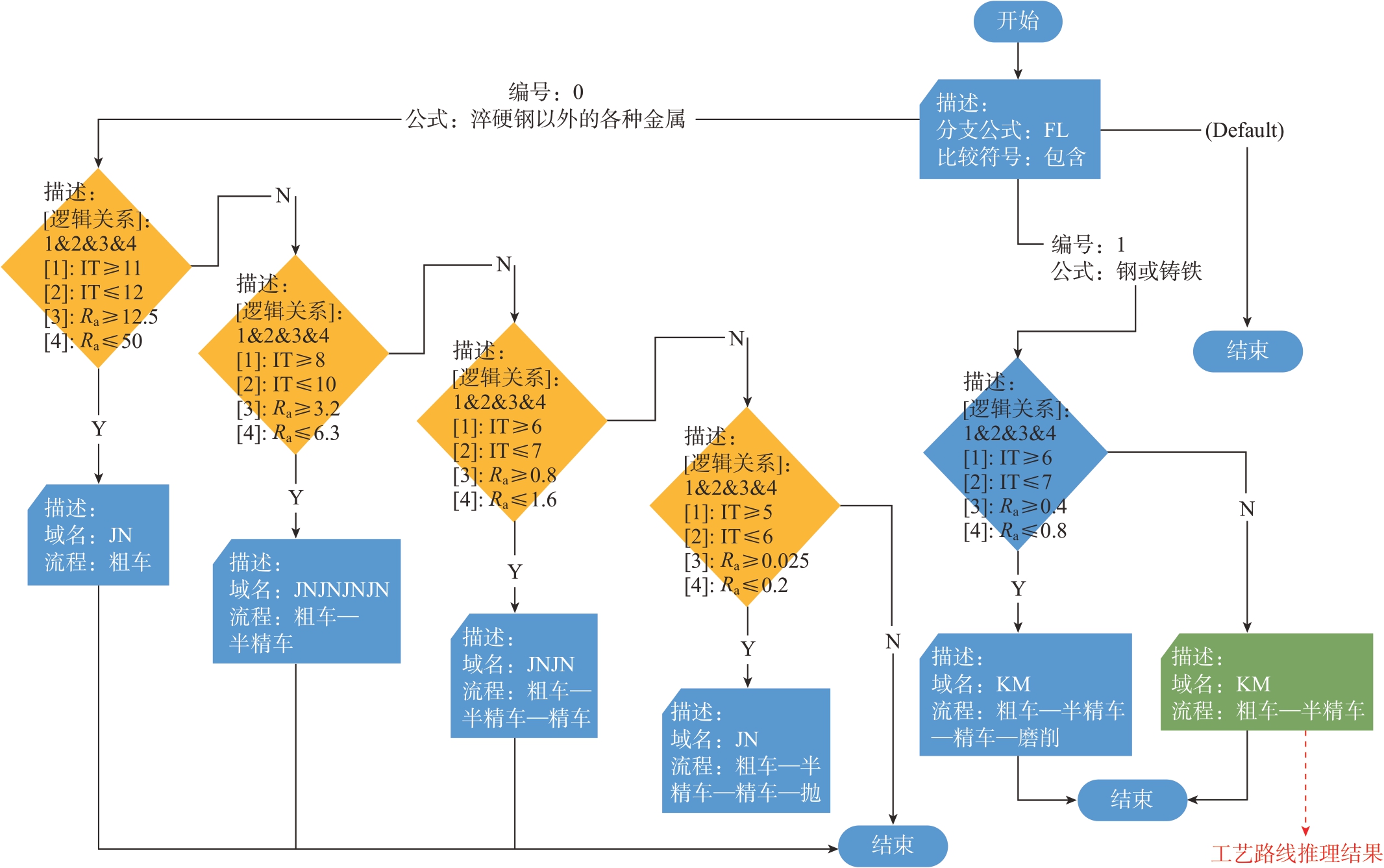 把工藝知識用可視化的流程圖的方式表達。流程定義包括流程圖的繪制、流程圖中圖元的屬性確定等工作。簡化的加工方法推理流程判定邏輯如圖7所示。