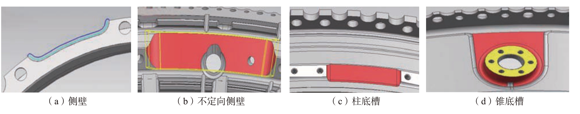 機匣零件特征主要分為回轉面系、錐底槽、側壁、孔系、平面、環槽等類型特征,按照加工方法進行定義,如圖2 所示。
