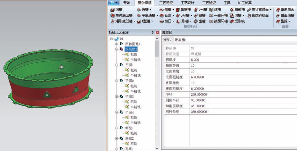(1)通過三維工藝設計軟件對機匣三維模型進行特征識別,提取機匣模型幾何信息以及非幾何信息并形成加工特征集(圖11)。