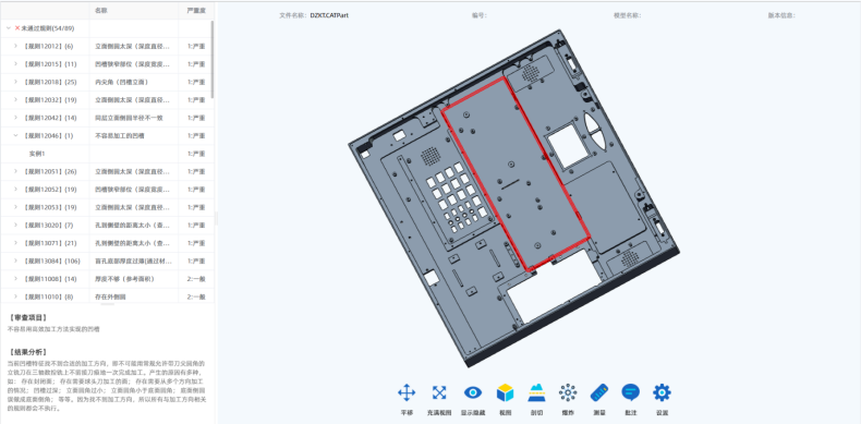 工藝工程師:可借用3DDFM,快速對(duì)圖紙進(jìn)行工藝性審查,檢查制造的經(jīng)濟(jì)性,并及時(shí)發(fā)現(xiàn)模型的設(shè)計(jì)缺陷,輸出規(guī)范化的可制造性分析報(bào)告,為設(shè)計(jì)人員提供改進(jìn)建議。