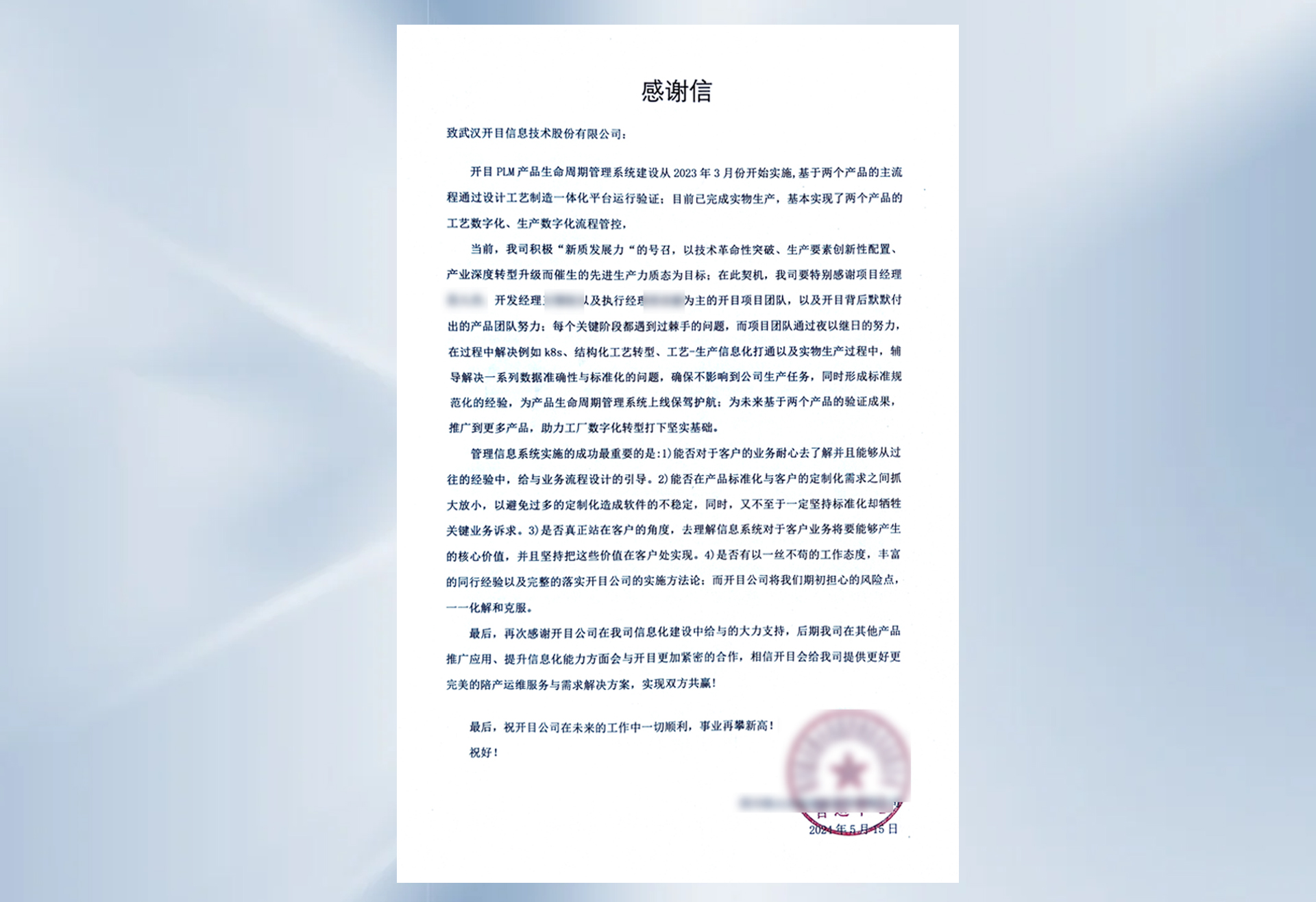 ——航天科技集團(tuán)某公司感謝信